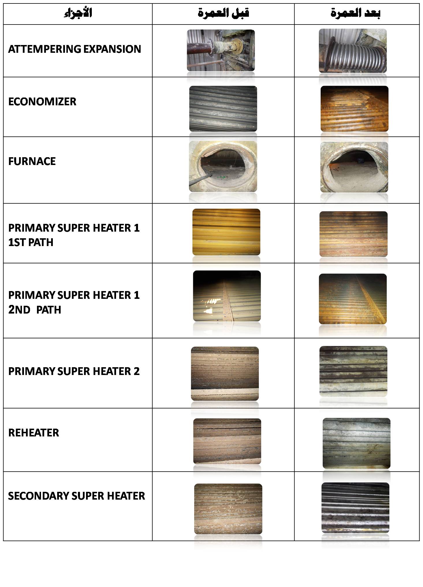 - عمل تغيير لمواسير عدد 4 مبادلات حرارية لدائرة التبريد المغلقة مما أدى الى تحسن كفاءة تبريد المحطة.