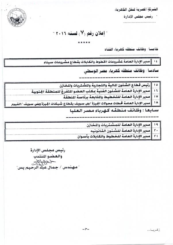 اعلان وظائف بالشركة المصرية لنقل الكهرباء......