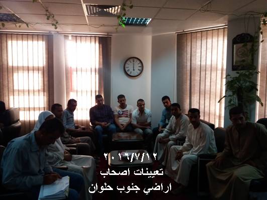 تنفيذا للاتفاقيات التي تمت مع اصحاب الاراضى وواضعي اليد لمشروع جنوب حلوان تم الانتهاء من تعيين مجموعة منهم كدفعة جديدة بناءا علي المستندات المقدمة منهم ووفقا للضوابط المتفق عليها وبعد اتخاذ جميع الموافقات الأمنية