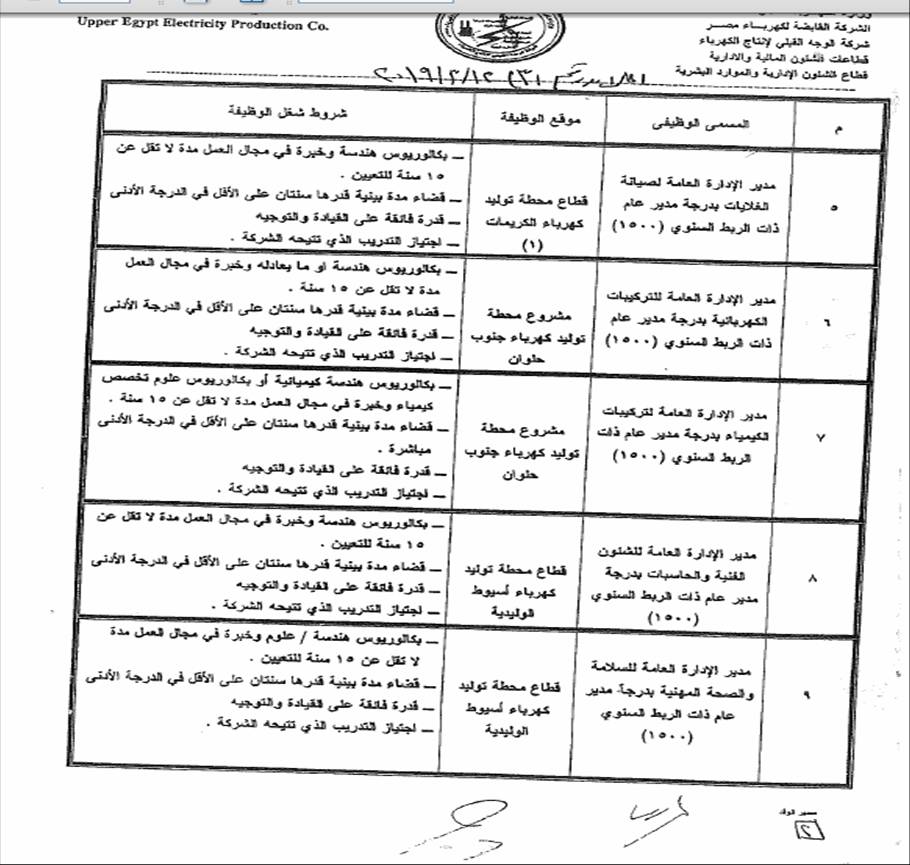 تعلن شركة الوجه القبلي لانتاج الكهرباء عن حاجتها للوظائف التالية:-