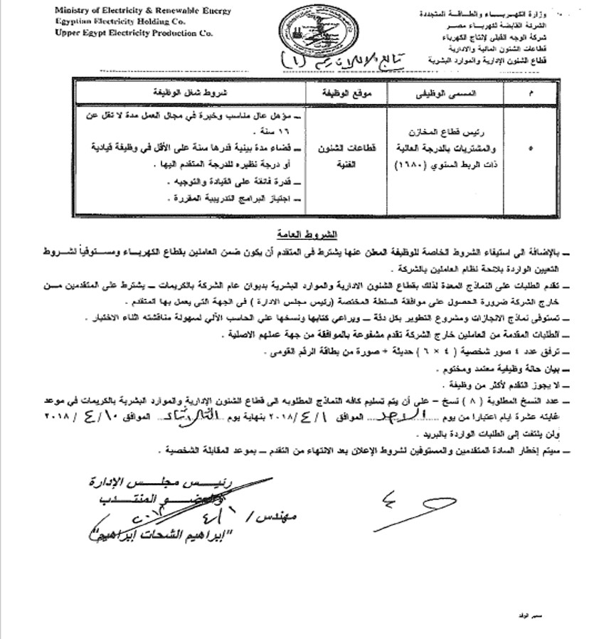 إعلان درجات شاغرة بشركة الوجه القبلي لانتاج الكهرباء...........